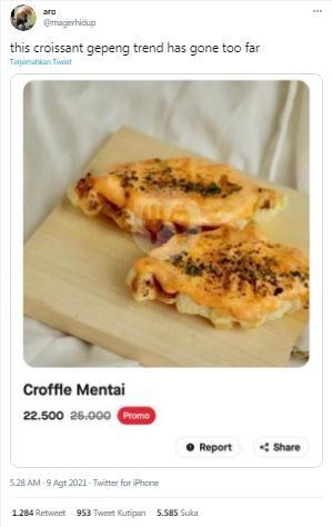 "This croissant gepeng trend has gone too far (tren croissant gepeng ini sudah terlalu jauh rasannya)," tulis akun Twitter @magerhidup.