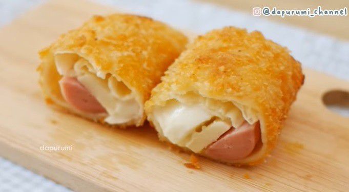 10. Ambil kulit, dan letakkan bagian mulus di atas lalu tambahkan isian seperti sosis, keju, telur rebus dan tuang saus mayo yang sebelumnya sudah diracik.