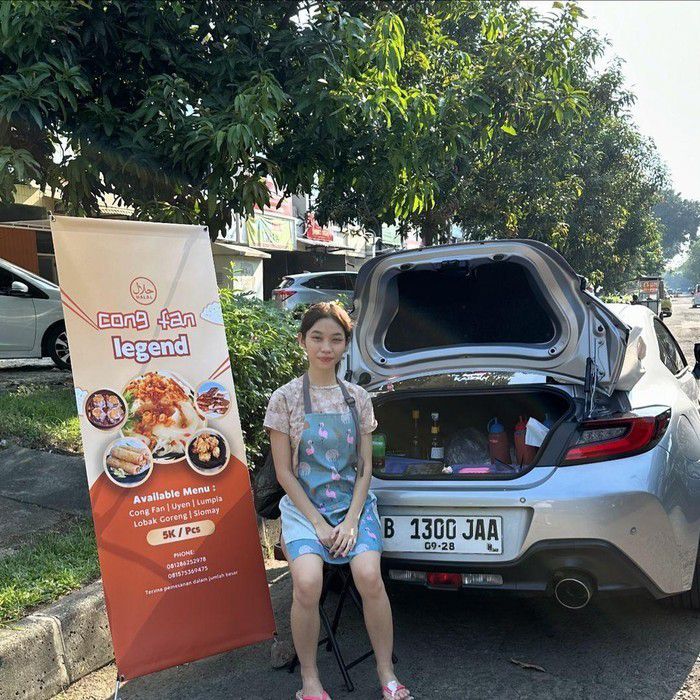 Biasanya, makanan ini dijual di kaki lima menggunakan gerobak. Namun berbeda dengan pedagang wanita satu ini. Dirinya menjual cicongfan menggunakan kendaraan mobil 2 pintu.