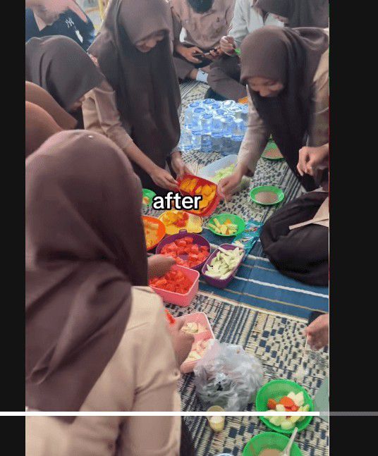 Ada pula siswa yang menyisihkan kacang tanah dari paket MBG. Esoknya, kacang itu diolah menjadi sambal rujak yang dinikmati bersama teman-teman. “Kamis kacang MBG = Jumat rujakan,” tulis akun @mipatwelvefive.