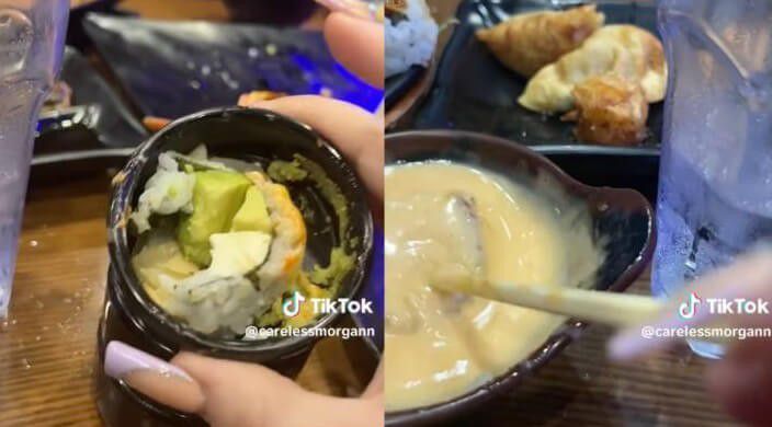 Lalu, ia juga memasukkan beberapa sisa sushi ke dalam mangkuk saus sehingga pihak restoran tidak memberikannya denda.