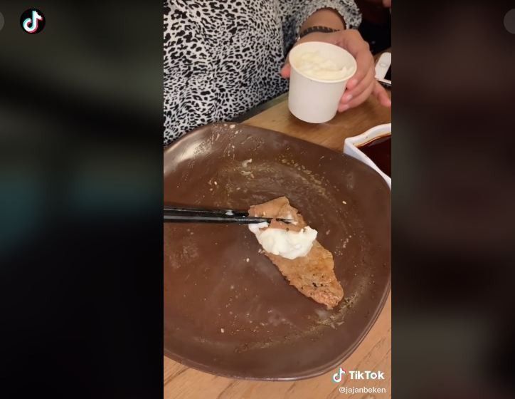Wanita Ini Makan Daging Panggang Pakai Es Krim (TikTok)