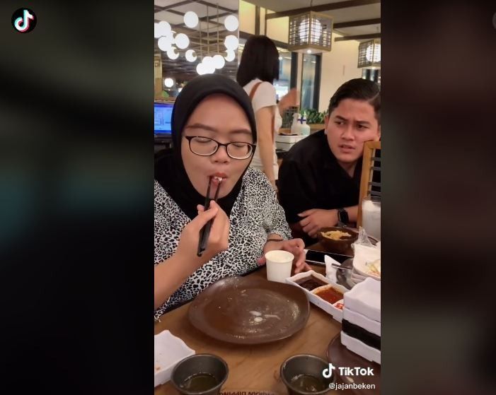 Nggak seperti orang pada umumnya, rupanya ada seorang wanita yang memiliki cara unik saat makan di restoran barbeku. Hal ini dibagikan melalui akun TikTok @jajanbeken.