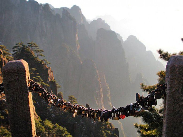Pegunungan Huangshan, juga dikenal sebagai Pegunungan Kuning, bukan hanya sekedar jalur pendakian populer, namun juga menjadi spot gembok cinta yang digandrunggi muda-mudi. Ditambah lagi, lokasi ini juga menyuguhkan pemandangan alam yang menakjubkan, tebing-tebing curam, dan hutan hijau yang melimpah.