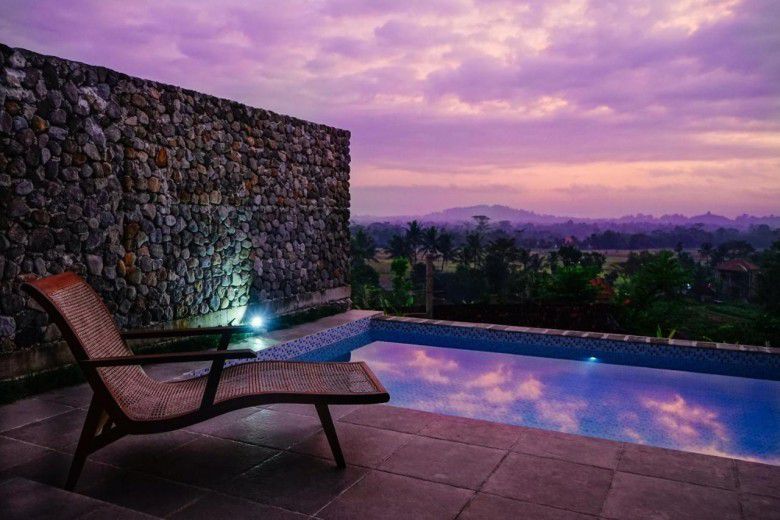 Hotel dengan pemandangan indah di Magelang selanjutnya adalah Borobudur Hills. Seperti namanya, hotel ini terletak di dataran tinggi dengan pemandangan Candi Borobudur dan perbukitan hijau. Borobudur Hills hanya memiliki 8 kamar dengan 4 private pool sehingga sangat cocok bagi kamu yang ingin menginap dengan suasana yang tenang dan romantis.