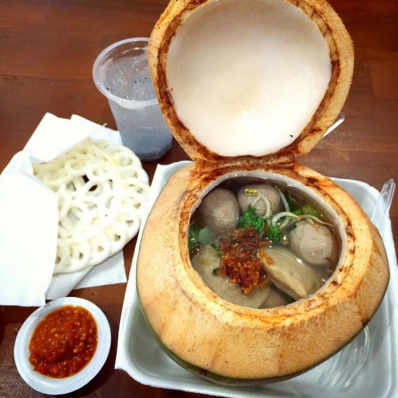Alasannya tidak diberikannya kecap yaitu sudah ada rasa sedikit manis, dari kelapa muda yang ada didalam batok kelapa itu gengs. Namun jika kalian merasa kurang manis, kalian hanya tinggal menyerut daging kelapa dan langsung konsumsi dengan kuah bakso itu.