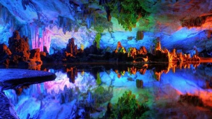 Tempat wisata satu ini berbentuk gua. Terletak di Guilin, Guangxi, China, Gua Reed Flute ini memiliki berbagai jenis batuan yang unik dan cantik. Jadi enggak salah, kalau gua ini merupakan gua tercantik di bumi.