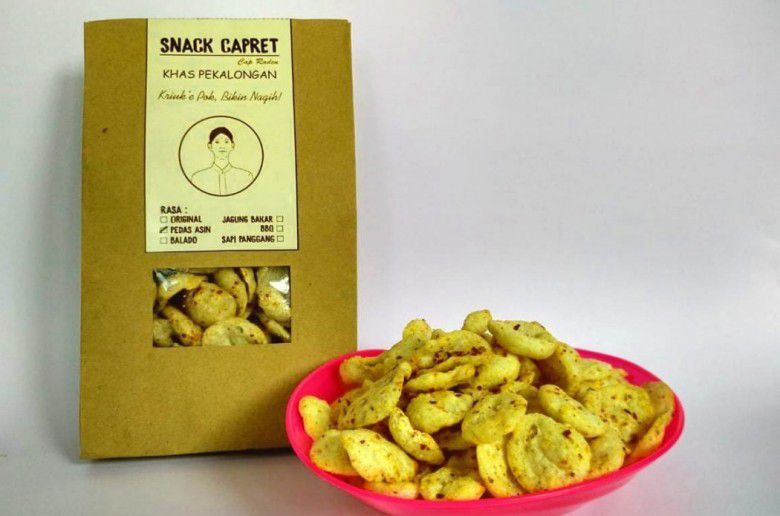 Mungkin namanya terdengar asing, tapi rasanya wah bisa bikin jatuh hati. Capret merupakan camilan khas Pekalongan yang terbuat dari tepung pati yang diberi bermacam-macam bumbu seperti barbekyu, pedas, dan keju. Capret bisa kamu beli di toko oleh-oleh khas Pekalongan dengan harga yang relatif murah, yakni mulai Rp10 ribu saja.
