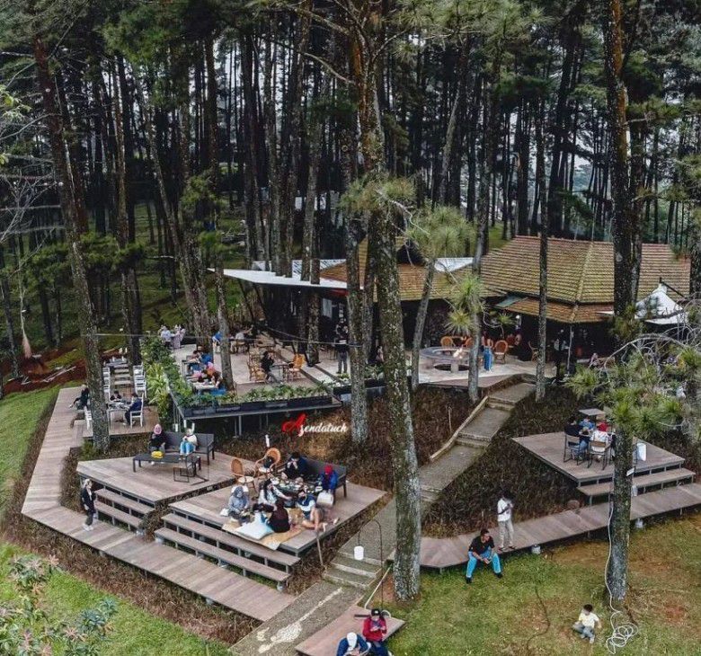 Sama seperti The Lake House, Pasir Angin Cafe juga memiliki konsep alam yang kental. Nongkrong di sini sama saja kamu sedang refreshing dari kehidupan kota yang super sibuk. Memandangi pohon-pohon pinus yang berjajar akan membuat pikiranmu tenang.