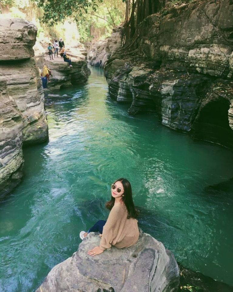 Di sana kamu juga akan disuguhi sungai air hijau dengan tebing tinggi. Sungai di Indonesia mungkin banyak yang cantik. Tapi kalau dihiasi tebing tinggi sepertinya jarang banget.