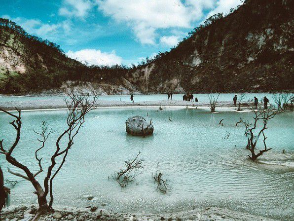 Sesuai dengan namanya dong ya, jadi tanah di sekitarnya berwarna putih akibat dari campuran unsur belerang. Gimana sih potret kawah putih Bandung Jawa Barat, yuk kita cek bersama, di sini.