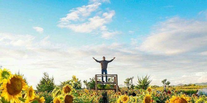 Kalian bisa menikmati foto-foto di tengah hamparan bunga Matahari yang sedang bermekaran. Instagramable banget.