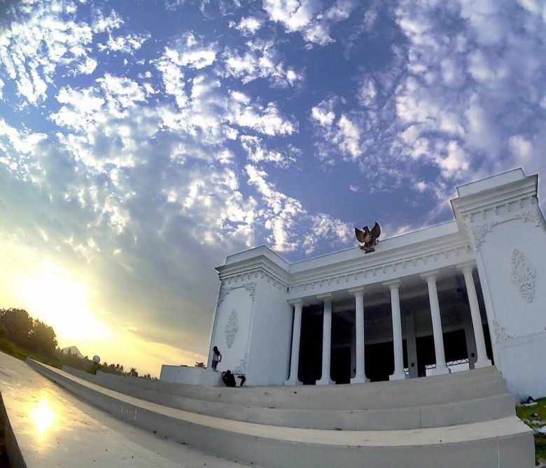 Siapa sih yang enggak mau foto-foto di bangunan keren ini? Rasanya kayak foto di Istana Negara beneran dan jadi tamu presiden.