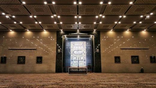 Ohya, ada juga kiswah ka'bah di tempat imam. Kiswah ini kerap jadi spot foto para pengunjung.