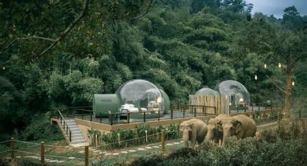 Hutan Bubble ini merupakan wahana baru di Hutan Bubble Chiang Rai, Thailand. Kalo ke sana, kamu bisa menghabiskan waktu dengan nginep di tempat kece bareng gajah! Kok bareng gajah deh, emang gak terganggu atau kita terganggu gitu?