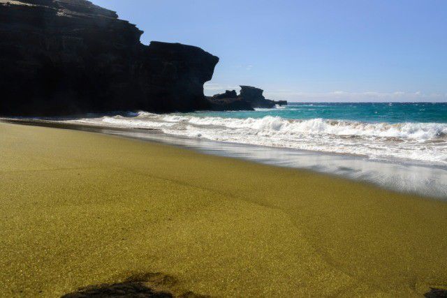 Pasir di Pantai Papakolea emang tergolong unik gengs. Ternyata warna hijaunya itu berasal dari pecahan batu kristal Olivine.