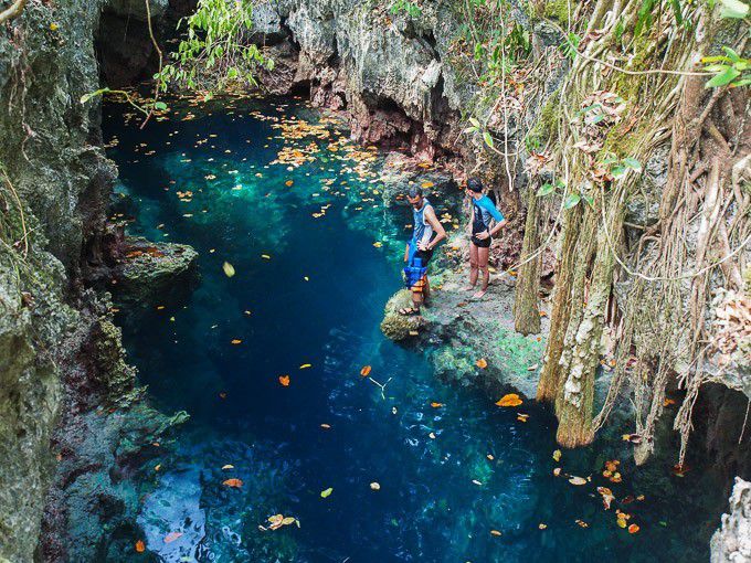 Buat yang suka lompat-lompat dari tebing, bisa nih ke Goa Haji Mangku. Kamu bisa jalan dulu masuk ke area hutan, terus lompat dan berenang di air super biru~