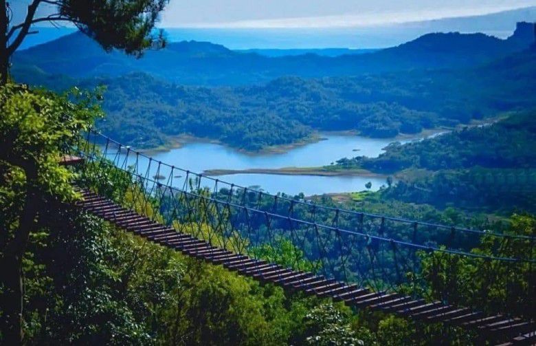Di sini terdapat menara pandang dengan bentuk rumah pohon yang bisa kamu gunakan untuk menikmati hamparan perbukitan hijau yang indah. Kalau kamu ingin tantangan, di sini juga menyediakan fasilitas outbond seperti flying fox dan trekking.