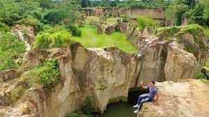 Di sini kamu akan disuguhi serangkaian tebing indah yang dekat dengan aliran sungai. Banyak spot-spot foto instagramable yang terdiri dari susunan bangunan segitiga dari kayu yang berada di undakan yang dikelilingi pepohonan.