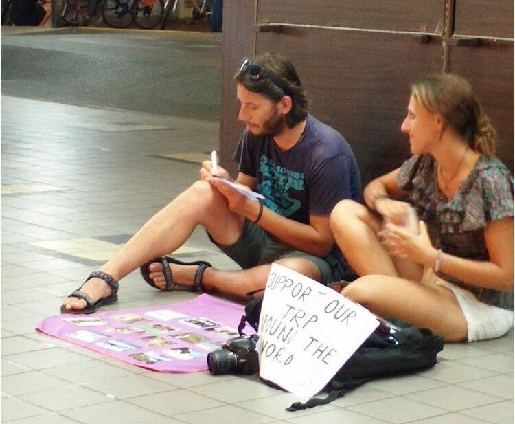 Ada beberapa turis yang jualan keahlian, kayak jualan hasil foto atau jualan lukisan. Ada juga yang ngamen di pinggir jalan. Tapi banyak juga yang ngemis gitu aja. Dan bilang kalau dia butuh duit buat jalan-jalan.