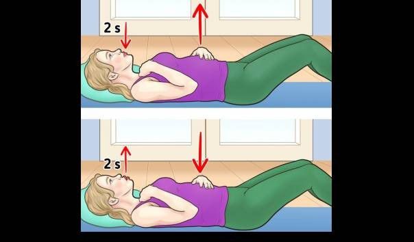 - Buang napas perlahan selama sekitar dua detik, dan perut mengempis.