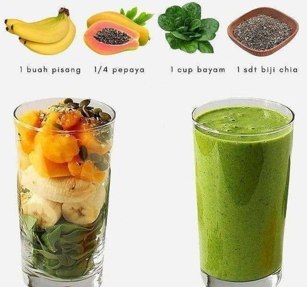 Bahan: pisang matang, greek yogurt, bayam, dan nanas. Biji chia menambahkan lemak omega-3 yang sehat, serat, dan sedikit protein untuk menambah nutrisi ekstra.