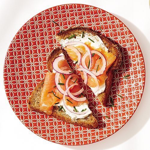 Cara menyiapkannya, oleskan cream keju pada roti tawar gandum yang sudah dipanggang. Di atasnya, taruh salmon masak, irisan bawang bombay dan daun bawang. Mudah kan?