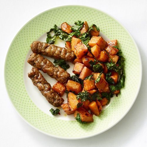 Panaskan wajan dan masukkan olive oil. Goreng ubi yang sudah dipotong-potong. Setelah agak matang, masukkan kale. Angkat. Setelah itu panaskan ayam rebus diatas wajan. Angkat dan taburkan bubuk cabe di atasnya. Menu sarapan ini mengandung 310 kalori.