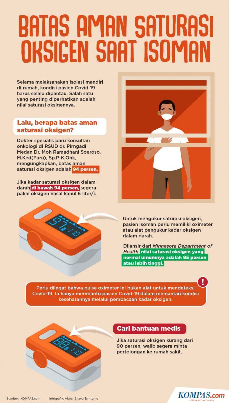 Cara Mengecek Saturasi Oksigen Saat Isolasi Mandiri (Kompas.com)