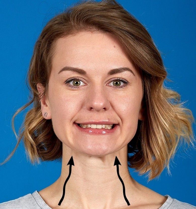 Lakukan senyuman dengan merapatkan gigi lalu arahkan lidah kelangit-langit mulut. Tahanlah gerakan senyum ini selama 3 detik dan lakukan gerakan ini selama 7-8 kali secara berulang-ulang.