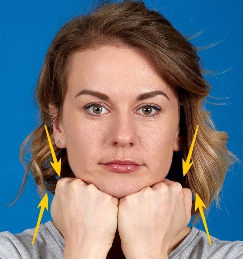 Caranya genggam kedua tangan kamu dan letakan dibawah dagu secara langsung. Lalu lakukan gerakan seakan kamu meninju objek sesuatu dan bahu kamu menahanya, tapi jangan keras-kerasya, ntar sakit. Lakukan kegiatan ini selama 5 sampai 7 kali setiap harinya biar lebih maksimal.
