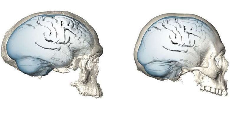 Bentuk tengkorak dan otak manusia (sains.kompas.com)