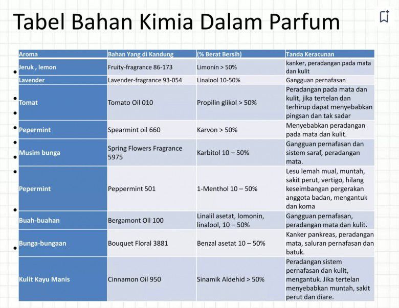 Bahan kimia yang ada dalam parfum (slideshare.net)