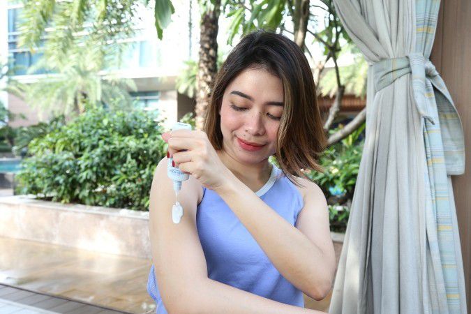 2. Jangan lupa gunakan SPF di bagian atas kepala yang tidak terlindungi oleh rambut, juga tangan, kaki, dan bibir.