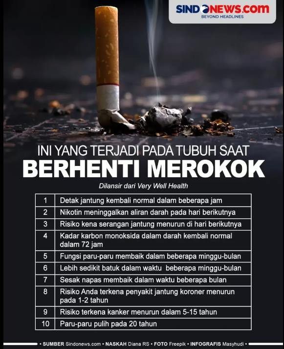 Yang terjadi pada tubuh saat berhenti merokok (infografis.sindonews.com)