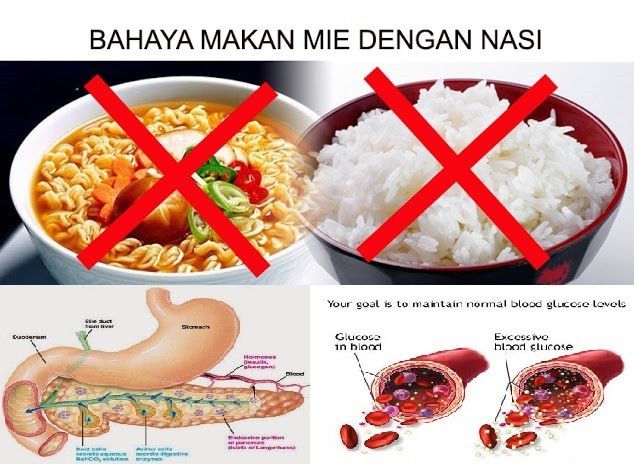 Gak cuma kalori berlebih yang akan masuk ke tubuhmu. Makan mie instan dan nasi berbarengan juga bisa sebabkan diabetes. Itu karena mie dan nasi bisa menaikkan indeks glikemik.