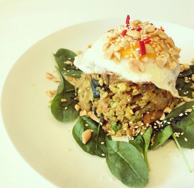 Tidak seperti kebanyakan makanan nabati, quinoa merupakan protein lengkap, yang berarti mengandung semua asam amino esensial. Asam amino adalah bahan penyusun protein yang membentuk otot, tulang, kulit, dan darah.