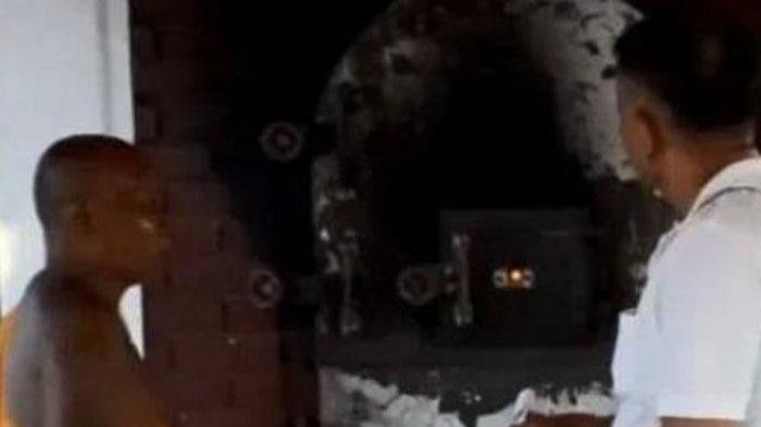 Sebelum melakukamn prosesi kremasi, insinerator atau petugas kremasi memberikan kesempatan suami Finney untuk memberikan penghormatan yang terakhir.