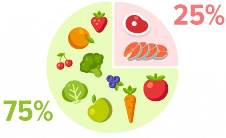 Hal pertama adalah kamu bisa memulai dengan memperbanyak konsumsi sayur dan buaha-buahan, setidaknya memenuhi 75 persen dari isi piring.