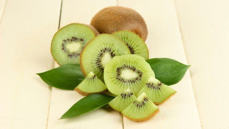 Kiwi memiliki vitamin K, A, B12, B6, E, zat besi, kalsium, dan kalium. Zat tersebut bekerja dengan memastikan sirkulasi darah di pembuluh, penyerapan zat besi untuk kesehatan tulang, dan penglihatan yang baik.