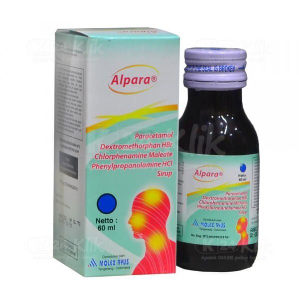 Tiap 5 ml Alpara Sirup mengandung paracetamol 125 mg, phenylpropanolamine HCl 3,125 mg, chlorpheniramine maleate 0,5 mg, dan dextromethorphan HBr 3,75 mg.