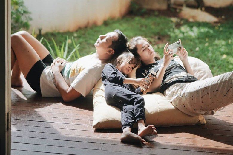 Keluarga Ringgo Agus Rahman ketika berjemur di bawah matahari (womantalk.com)