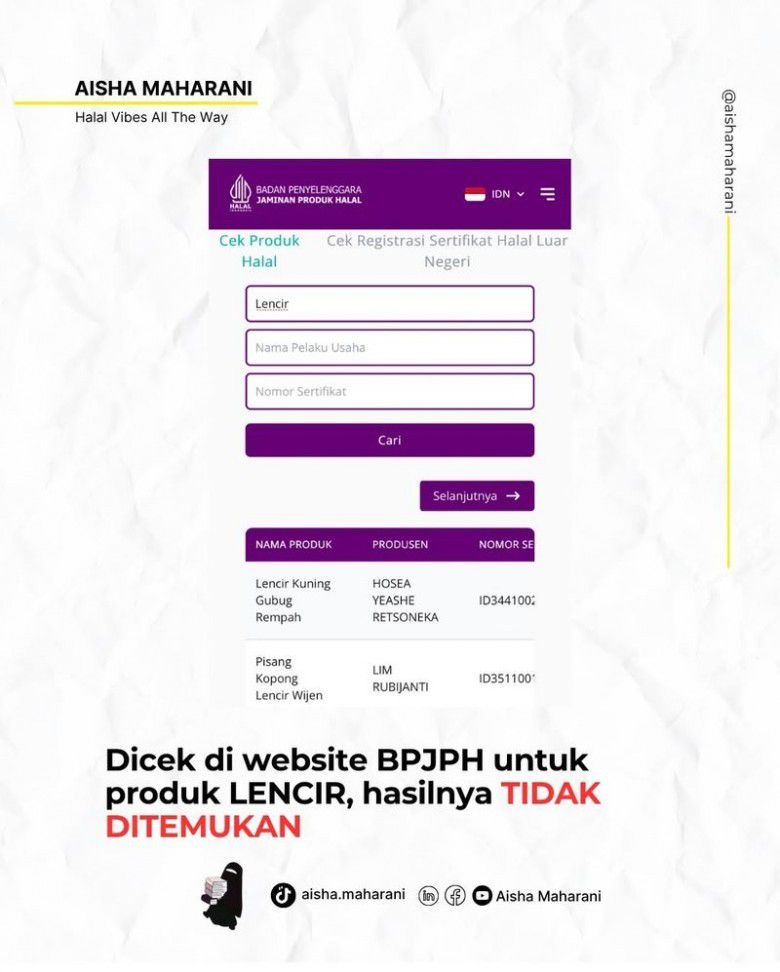 Minuman Lencir milik Michelle Halim diduga palsuka logo halal (detik)