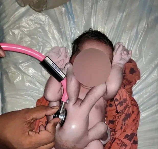 Kelahiran seorang bayi berhasil membuat geger masyarakat. Hal ini lantaran bayi tersebut dilahirkan dengan keadaan yang tidak biasa. Bayi itu terlihat memiliki dua pasang anggota tubuh tambahan. Kisah ini terjadi di kota Hardoi di negara bagian Uttar Pradesh, India.