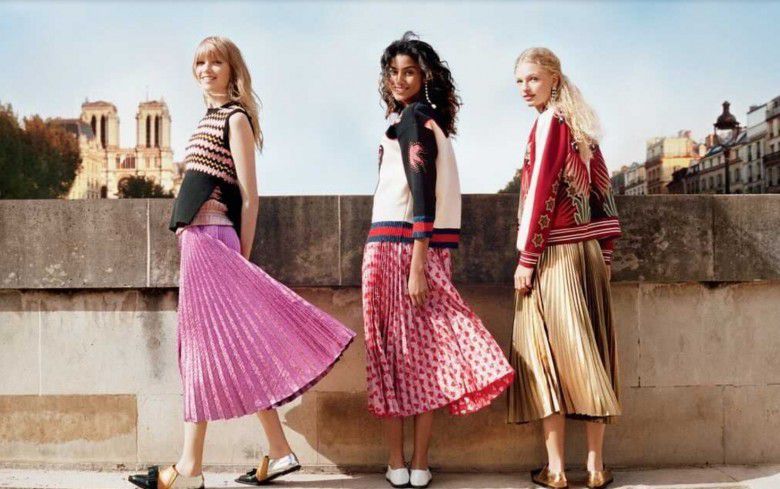 Gaya berpakaian ala Korea dengan rok plisket dan sweater (vogue.com)