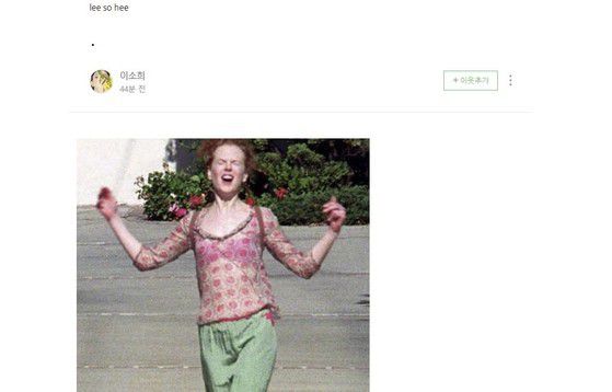 Han So Hee sempat memposting foto Nicole Kidman sebelum berita putusnya dia dengan Ryu Jun Yeol muncul. Dalam foto tersebut, tampak ekspresi Nicole Kidman yang lega karena terlepas dari beban.