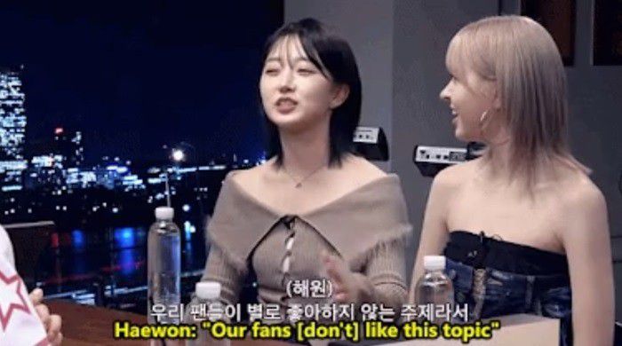 Leader NMIXX itu pun berusaha mengalihkan topik pembicaraan dengan mengatakan kalau masalah itu cukup sensitif didengar fansnya. "Fans kami tidak suka topik seperti ini," pungkas Haewon NMIXX yang kemudian pembicaraan beralih ke hal lain.