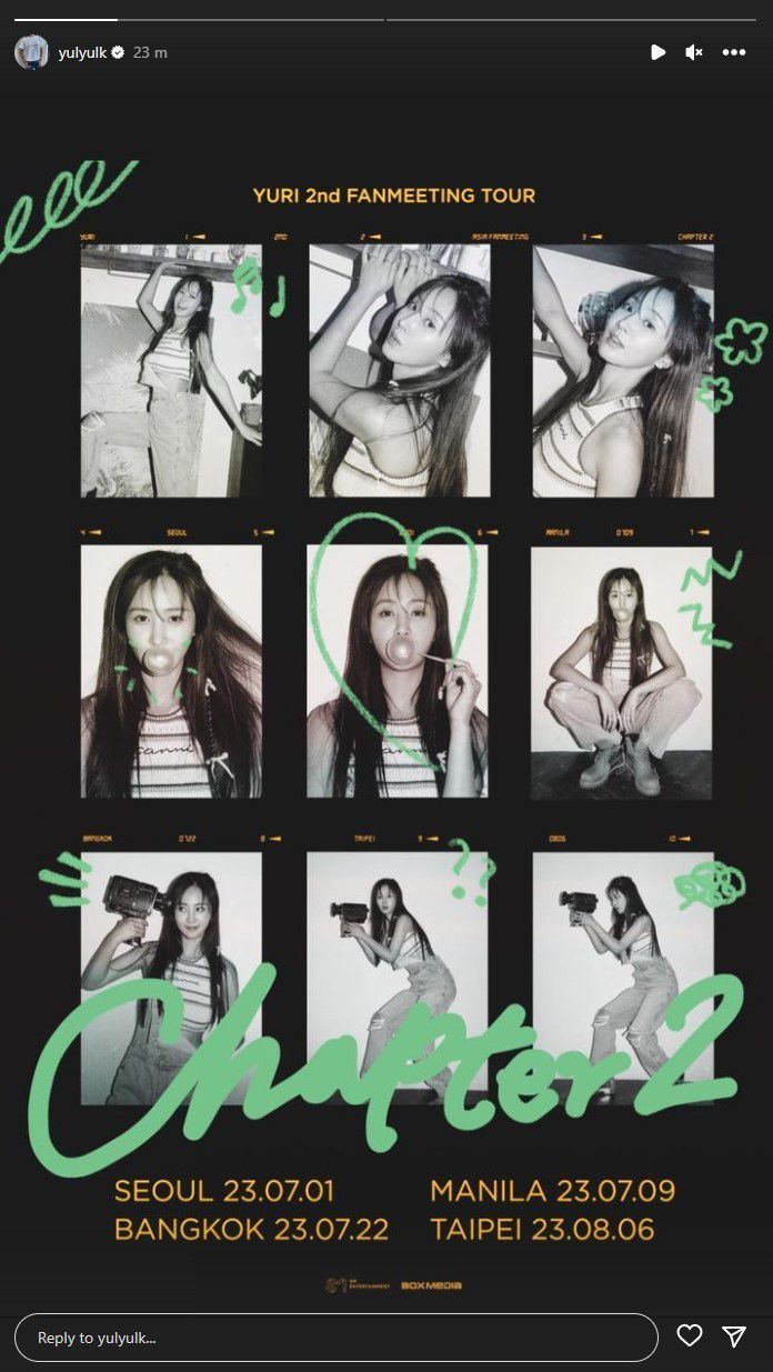 Pada tanggal 5 Juni 2023 kemarin, Yuri mengumumkan tanggal dan kota di seluruh Asia untuk tur fan meeting keduanya yang akan datang “Chapter 2.”