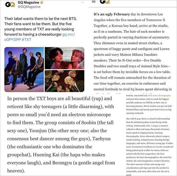 Isi Artikel GQ Magazine Yang Diduga Rasis Ke Hueningkai TXT (Twitter)