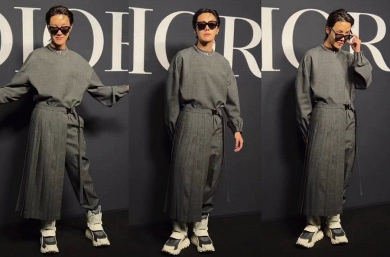 Adapun foto J-Hope BTS berada di sisi paling kiri. Mengenakan kacamata hitam, idol kelahiran 18 Februari 1994 itu memadukannya dengan atasan berwarna abu-abu dan celana panjang yang ditambah aksen seperti rok dengan warna yang sama dengan atasannya.